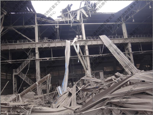 某渣处理厂房发生坍塌事故,委托我单位查明坍塌主要原因,鉴定剩余构件的安全状况,评估受损程度及开展后续治理的可行性分析,为科学、经济、合理地快速恢复生产提供技术依据。